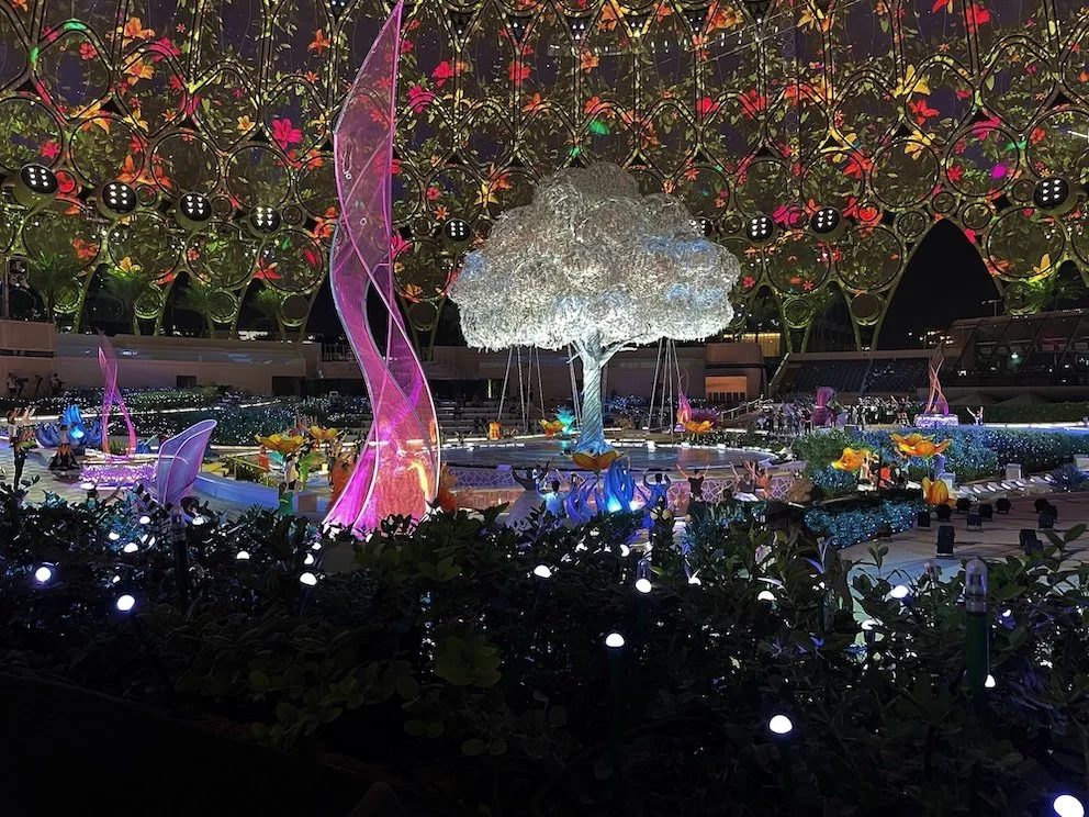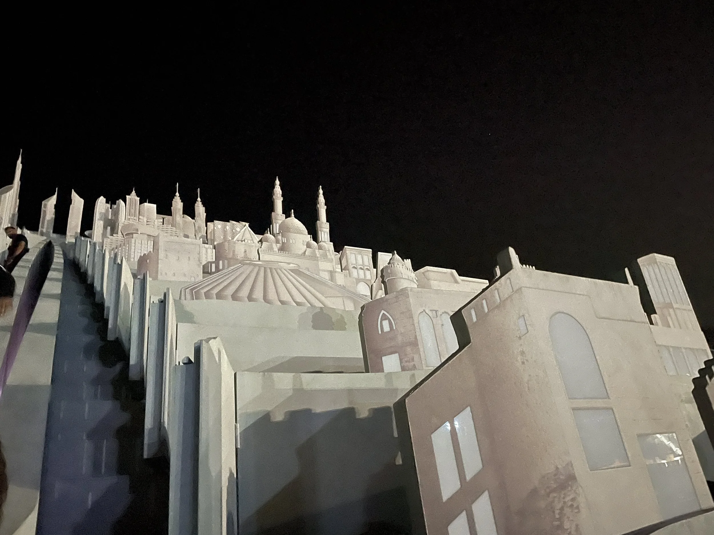 100 most iconic buildings in UAE recreated as self illuminated, telescopic scenic elements for UAEs 50th National Day celebration spectacular.