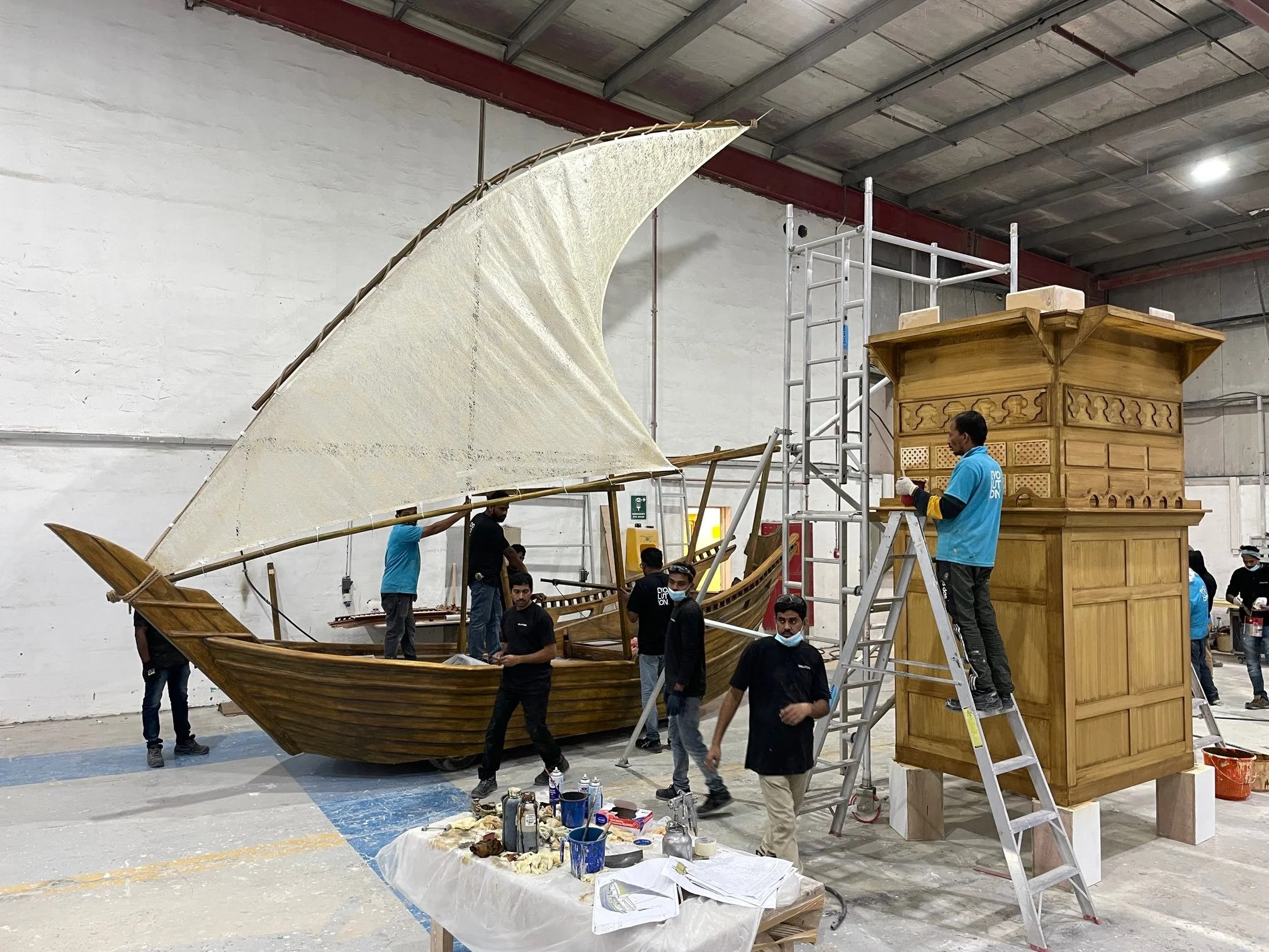Large scale scenic trucks and self propelled “land dhow”. Super light weight design and materials. Museum quality finish.